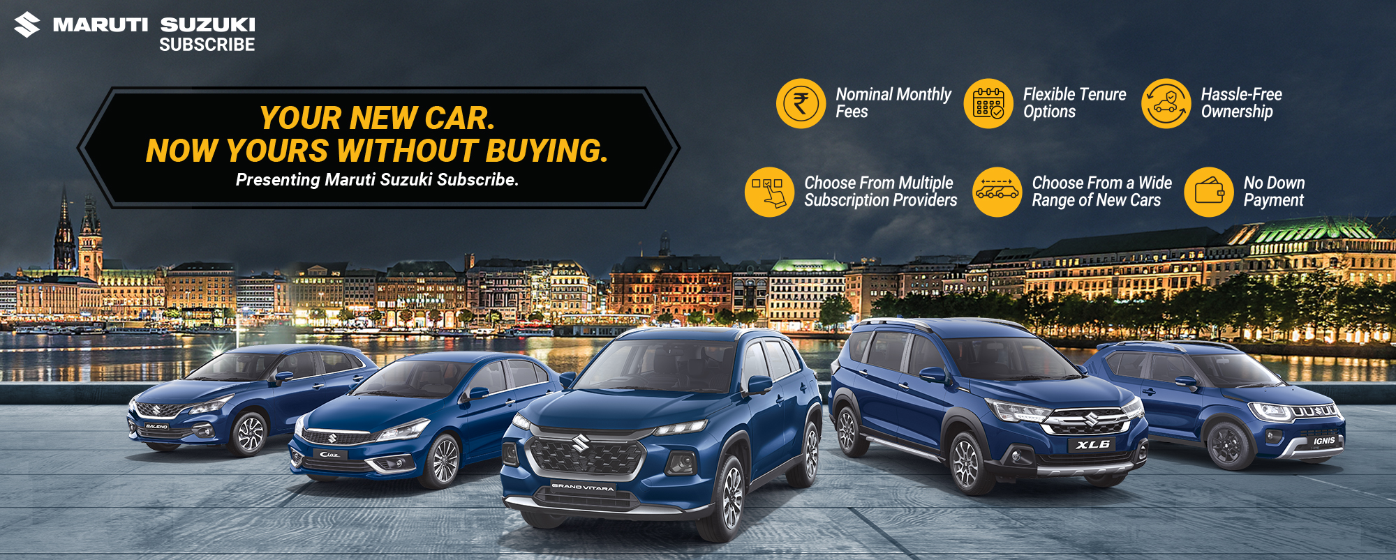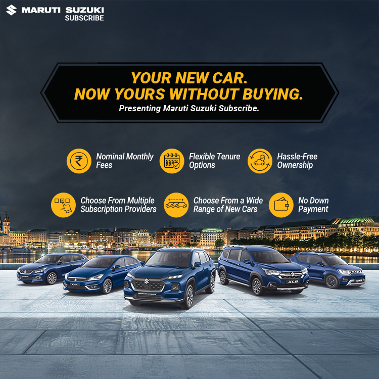 Maruti Suzuki Subscribe enables all customers to enjoy driving their preferred Maruti Suzuki cars without having to deal with all the financial responsibilities that come with owning a car.All you need to do is opt for a monthly subscription plan at a fixed monthly fee, which includes the routine maintenance and insurance costs, and choose a flexible tenure. At Shruti Motors in, , Davanagere, all Hatchback, Sedan, SUV, the MUV models line-up includes Baleno, Invicto, EVitara, Jimny, Ciaz, Ignis, Fronx, Grand Vitara, XL6. Here, you will enjoy Maruti Suzuki Subscribe benefits such as:
